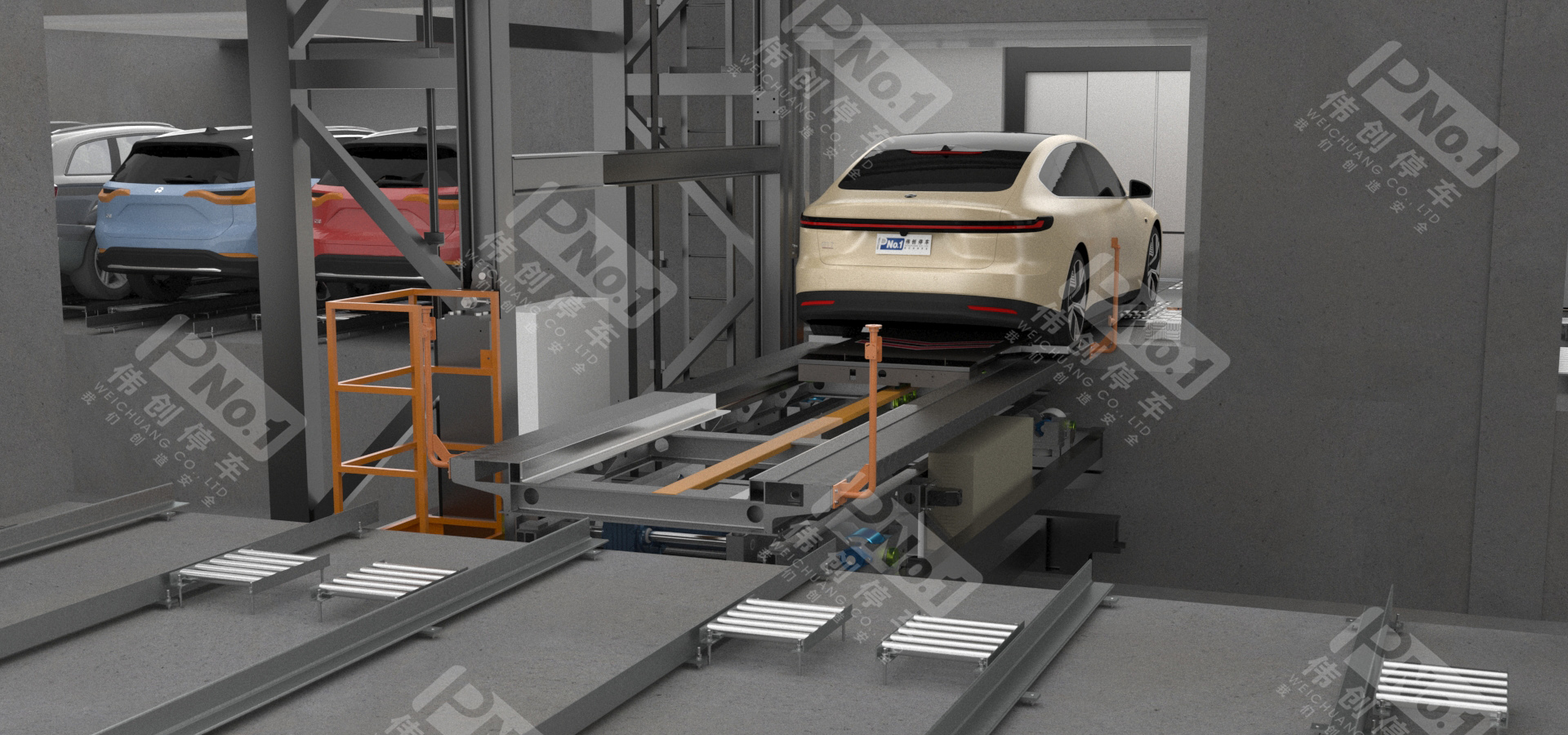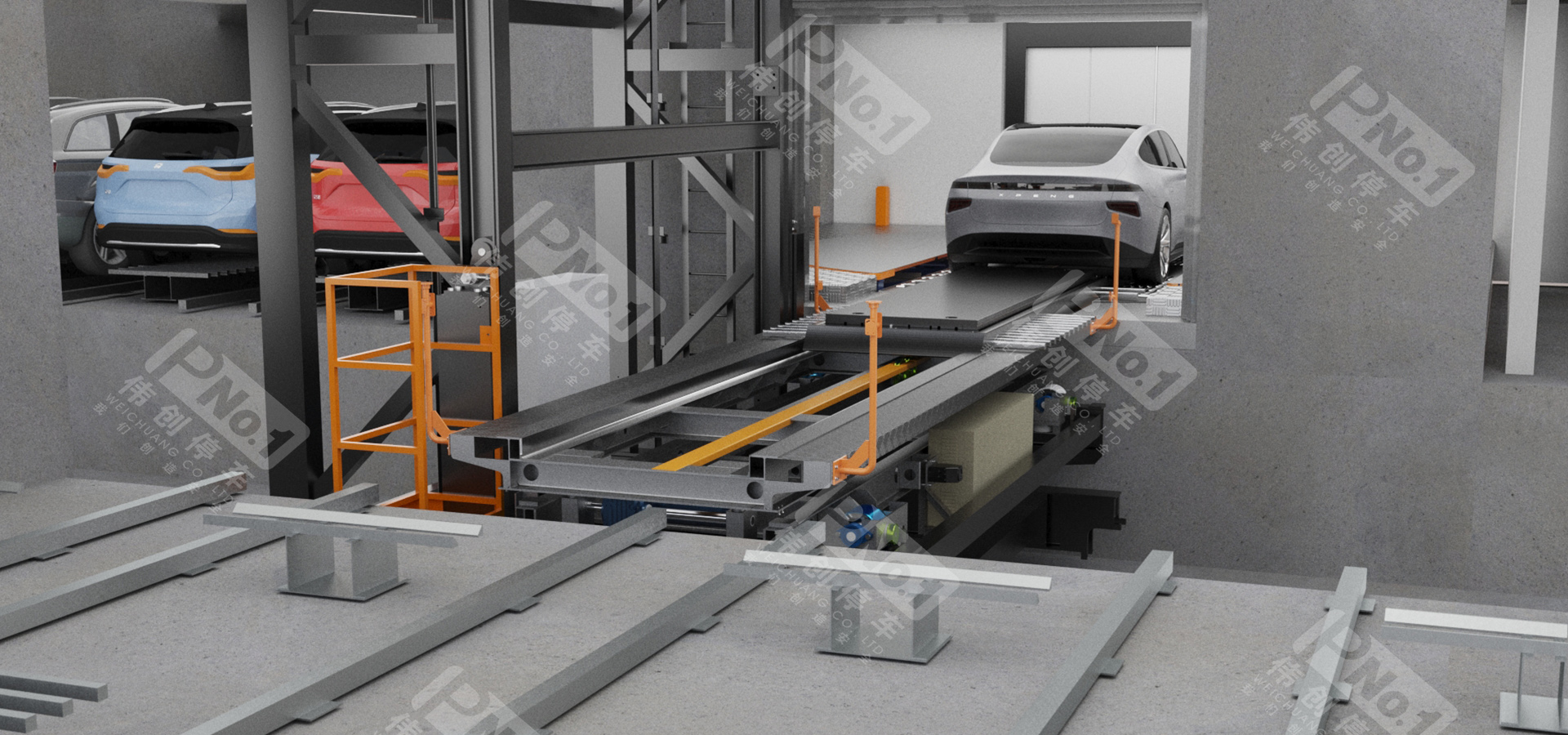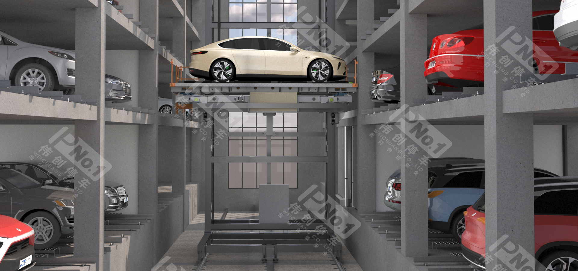偉創(chuàng)巷道堆垛類機械停車設(shè)備采用先進(jìn)的計算機控制,是一種集機、光、電、自動控制為一體的全自動化機械式停車設(shè)備。使用堆垛機將汽車水平且垂直移動到停車位旁,并運用梳齒式搬運器或堆垛機上的存取機構(gòu)將汽車存入,反之取出。